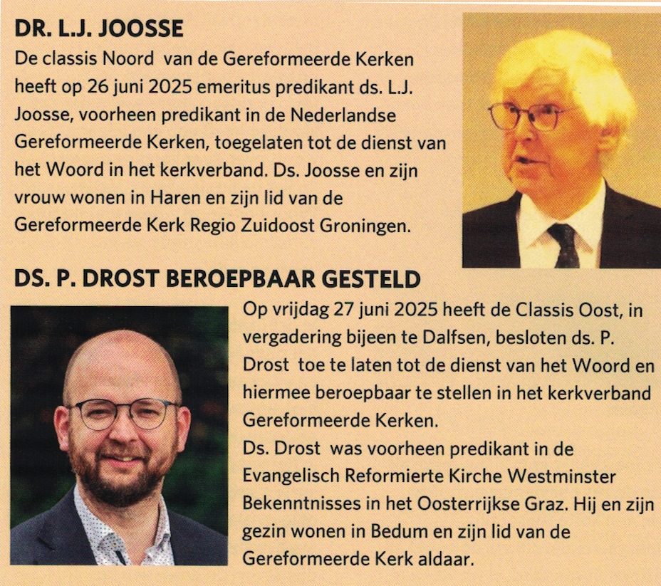 Inmiddels heeft de Gereformeerde Kerk van Groningen Zuid-Oost een beroep op ds. Drost uitgebracht.